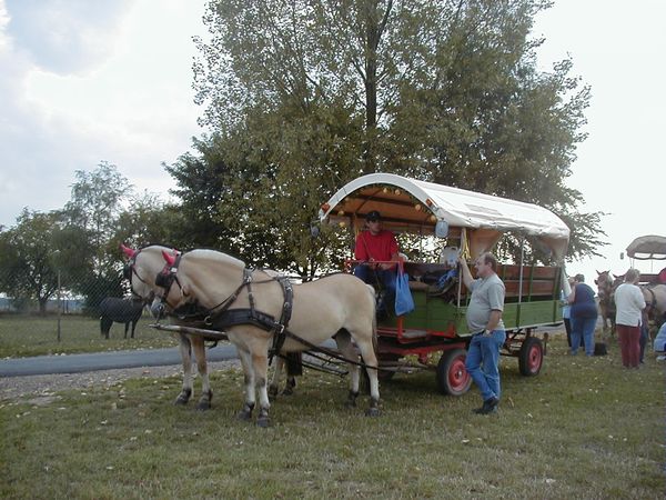 planwagenfahrt 07. september 2002 abschluss auf dem bauernhof alfred köppen, offenthal (Fotos Angelika Landgraf-Krimm) |